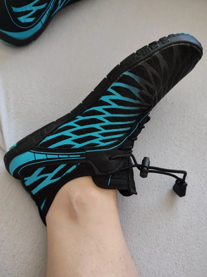 Enten du padler kajakk, står på et SUP-brett eller går i land på en steinete øy, gir disse badeskoene deg stabilitet og beskyttelse. Den sklisikre sålen gir bedre grep på våte steiner og brygger, mens den fleksible designen gjør dem komfortable å bruke hele dagen. Samtidig beskytter sålen føttene mot ujevnt og glatt underlag.