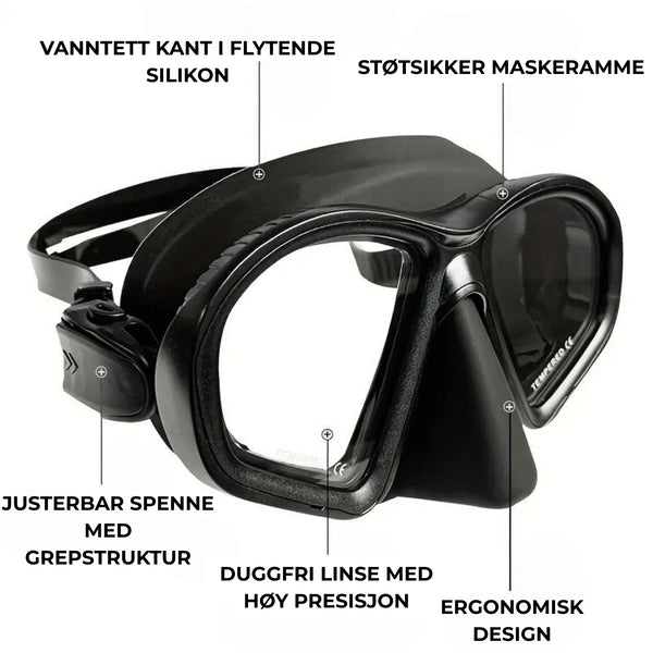 Oppdag Undervannsverdenen Med Krystallklar Sikt. Med denne premium dykkemasken får du en helt ny opplevelse i vannet. Herdede glasslinser gir stabil og klar sikt under vannoverflaten, mens den myke silikonpassformen sitter komfortabelt selv under lengre snorkling eller dykking. Perfekt for hav, innsjøer og basseng når du vil utforske verden under vann.