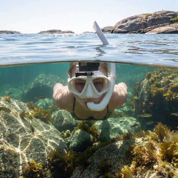 Ja, dykkermasken har et integrert kamerafeste hvor du enkelt kan montere et actionkamera og filme snorkeleventyrene dine.