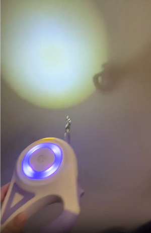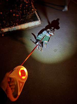 Upplev tryggare promenader på kvällen med detta utdragbara LED-hundkoppel. Den inbyggda ficklampan lyser upp vägen framför dig och gör både dig och din hund synliga i mörkret – så att varje promenad blir både säker och behaglig.