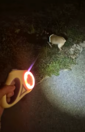 Många hundpromenader sker tidigt på morgonen eller sent på kvällen när sikten är sämre. Det kan göra det svårare att se vägen och att själv vara synlig för andra. Det här LED-hundkopplet har en inbyggd lampa som lyser upp framför dig och gör både dig och din hund mer synliga i mörkret.