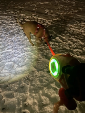 Älskar det här kopplet! Ljusfunktionen är ovärderlig nu när det blir mörkt tidigt. Jag känner mig mycket tryggare på kvällspromenaderna.