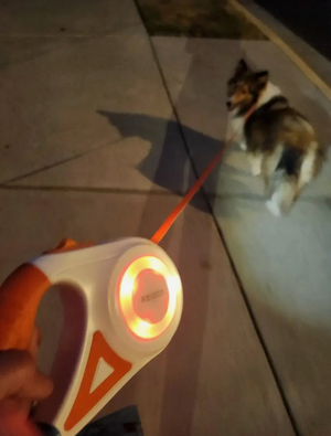 LED Hundkoppel med Lampa – Utdragbart Koppel för Trygga Kvällspromenader - Orange