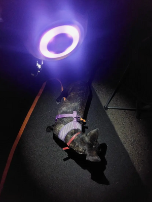 LED-ljus och reflekterande snöre gör både dig och din hund mer synliga i mörker.