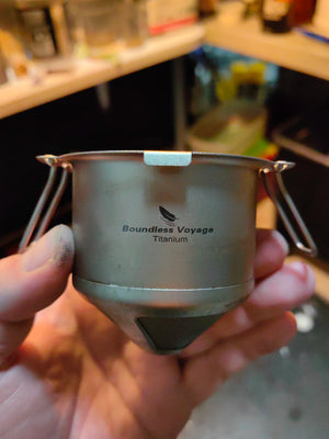 Ja, titan klarar extrem värme och kan användas nära lägereld eller stormkök utan att påverkas. Vi rekommenderar däremot att inte placera filtret direkt i lågorna, eftersom sot och aska kan fastna i nätet och påverka både smak och rengöring. Titan i sig tål värmen – men håll filtret ovanför eller bredvid elden för bästa resultat.